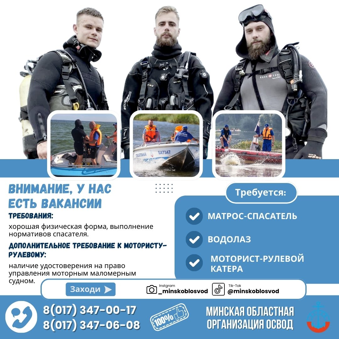ПРИЗЫВАЕМ вас вступать в ряды ОСВОД персонально либо трудовыми коллективами в качестве юридических лиц и поддержать нас в решении государственно-значимых задач по спасению жизни на водах и льду!